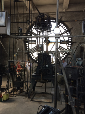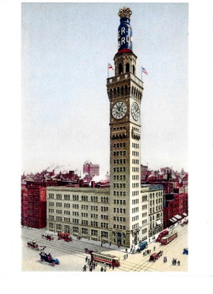 Arts Tower The famous Bromo Seltzer tower clock in downtown Baltimore was installed in 1911. The rotating illuminated blue bottle was removed in 1936 when it became unstable. The dials are 24’ in diameter with the 15’ cast iron and glass portion illuminated at night. The clock movement is a #10 Seth Thomas with automatic weight winding system.